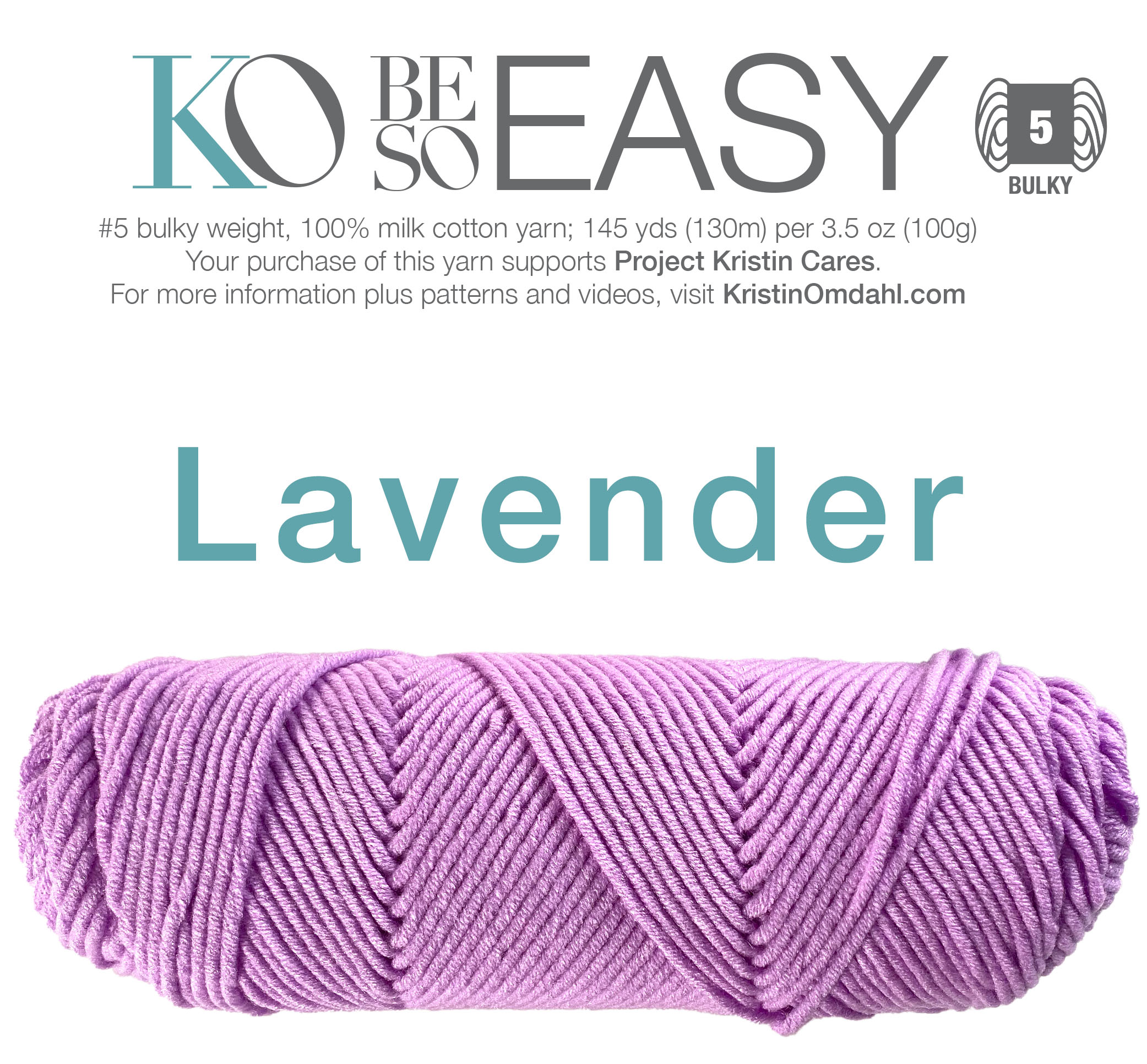 #2 Be So Easy Yarn: #5 bulky weight 100% milk cotton yarn; 145 yds (132m) per 3.5 oz (100g); comes in 29 colors; top five most popular colors of Be So Easy Yarn in 2021: cream, lavender, cornflower, pink lemonade and sea green. Browse all 29 colors HERE