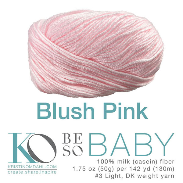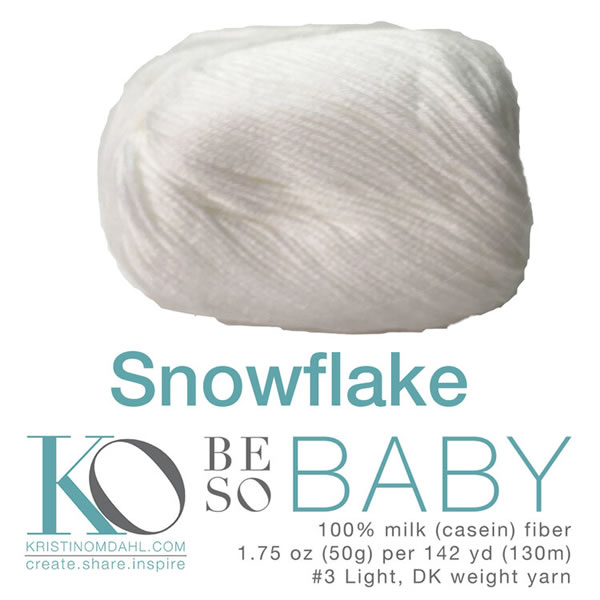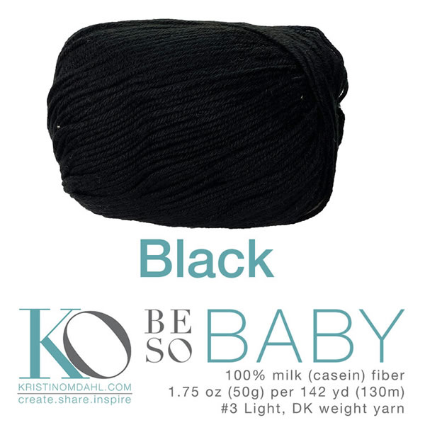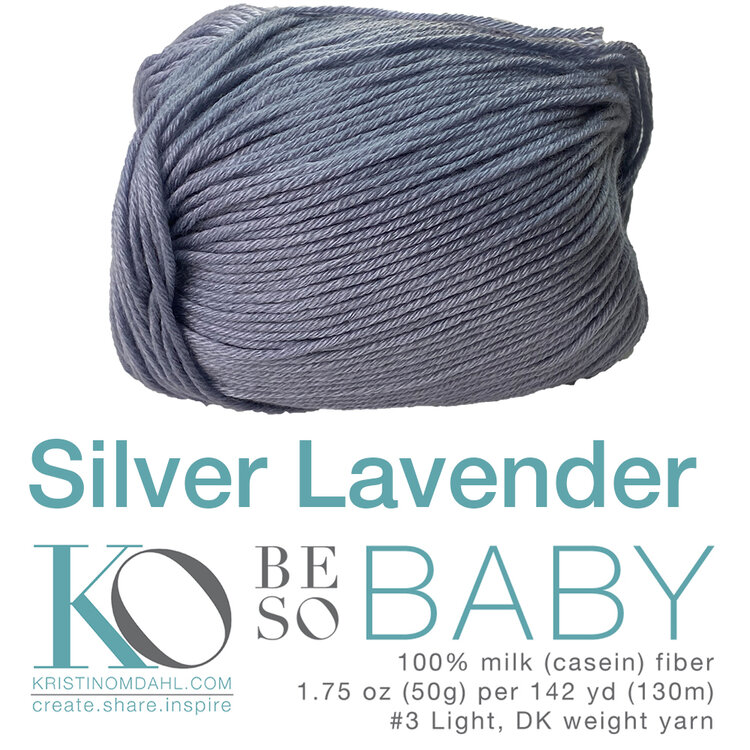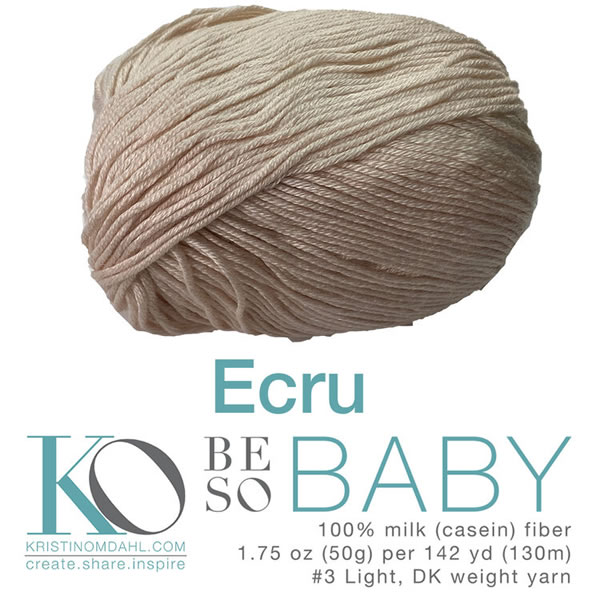 #1 Be So Baby Yarn; #3 dk weight 100% milk fiber yarn; 142 yds (130m) per 1.75 oz (50g); comes in 60 colors; top five most popular colors of Be So Baby Yarn in 2021: ecru, snowflake, black, blush pink and silver lavender. Browse all 60 colors HERE