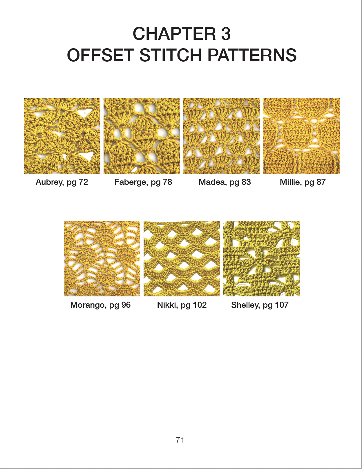 Each stitch pattern includes charts as well as written instructions for every adaptation of the pattern’s stitches along with repeating information for you to explore beyond the written words and charts.