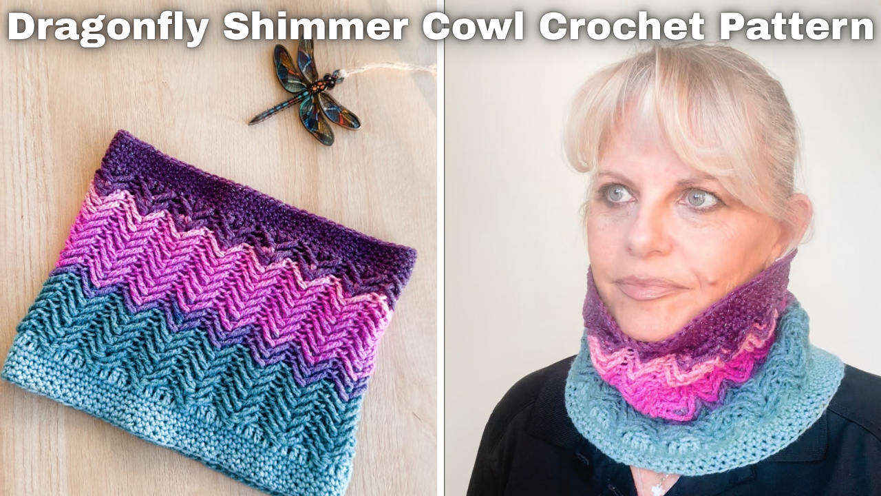 The Dragonfly Shimmer Cowl is a celebration of color, texture, and light. Worked in a radiant gradient yarn with a subtle sparkle thread, this cowl captures the iridescent glow of dragonfly wings at golden hour. The zigzag stitch pattern adds gorgeous movement and dimension, while simple construction makes this a relaxing yet stunning project. Whether you style it for everyday wear or gift it to someone special, this shimmering cowl is sure to become a standout accessory.