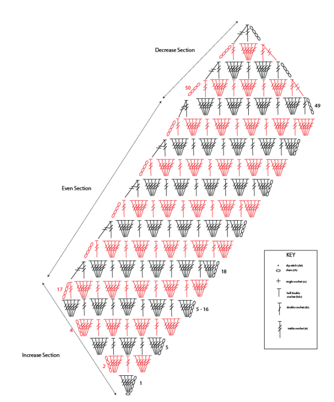 Rows 19 – 48 : Rep rows 17 – 18, turn.