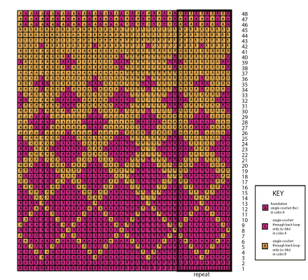 ✨ Techniques: Tapestry crochet, color changes, back-loop-only single crochet