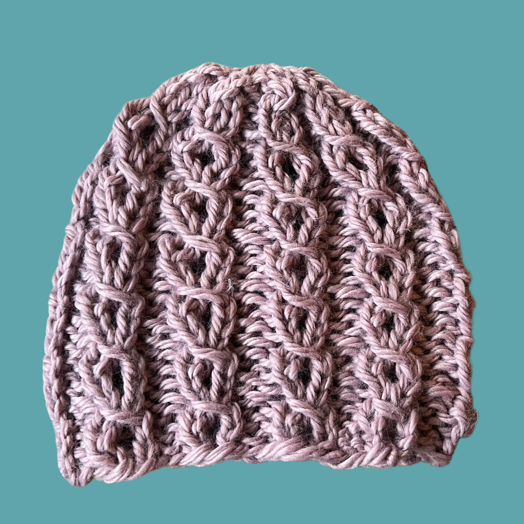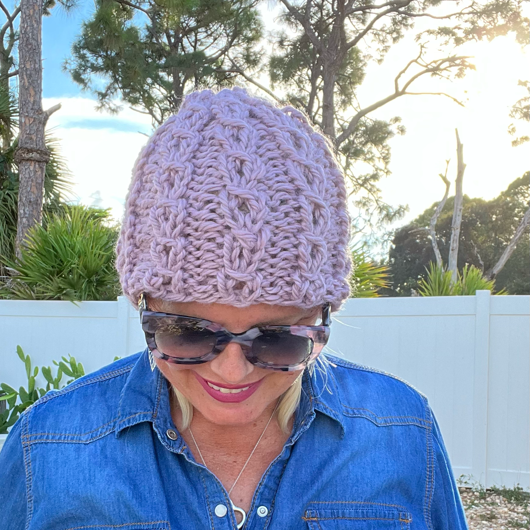 This knit hat pattern is a prime example of deceptively easy. This is a super quick project knit up with #6 super bulky weight yarn and US15 (10mm) knitting needles. And, the stitch pattern is really easy, perfect for beginners, and looks far more complicated than it is. In this knit hat pattern I used a mock cable stitch pattern. Even if you have never knit cables before, I am sure you can knit these faux cables!
