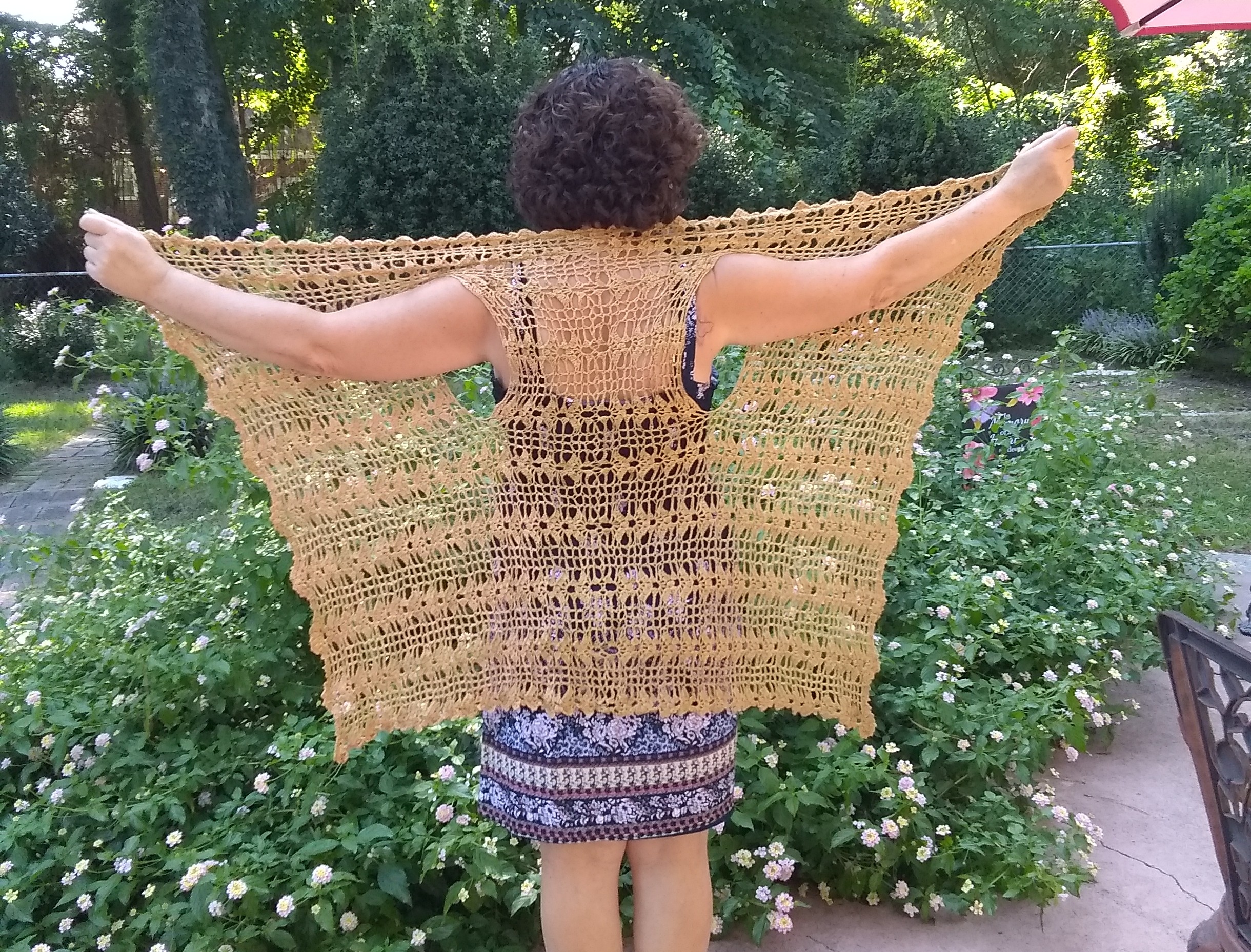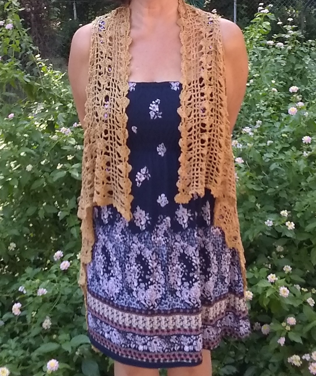Such a pretty lacey vest to throw over a summery dress. The lace pattern is beautiful. I get compliments everytime I wear it.