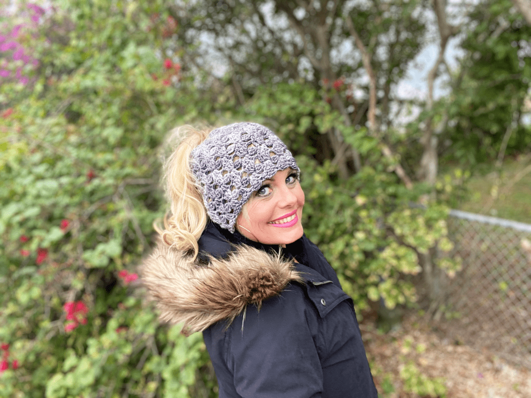 Easy Messy Bun or Ponytail Hat: The Primrose Hat is a stylish and functional crochet design perfect for anyone who loves to wear their hair up. Whether you’re heading out for a chilly walk or just want a cute, cozy accessory, this hat keeps your head warm while leaving room for a bun or ponytail.