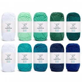 Hobbii Yarn’s Friends Cotton 8/8; 100% cotton, #3 dk weight yarn; 82 yds (75m) per 1.75oz (50g) ball; shown in Color pack 14, color A 51, color B 54, color C 45, color D 47, color E 48, color F 61, color G 63, color H 65, color I 72, color J 71, 1 ball each.
