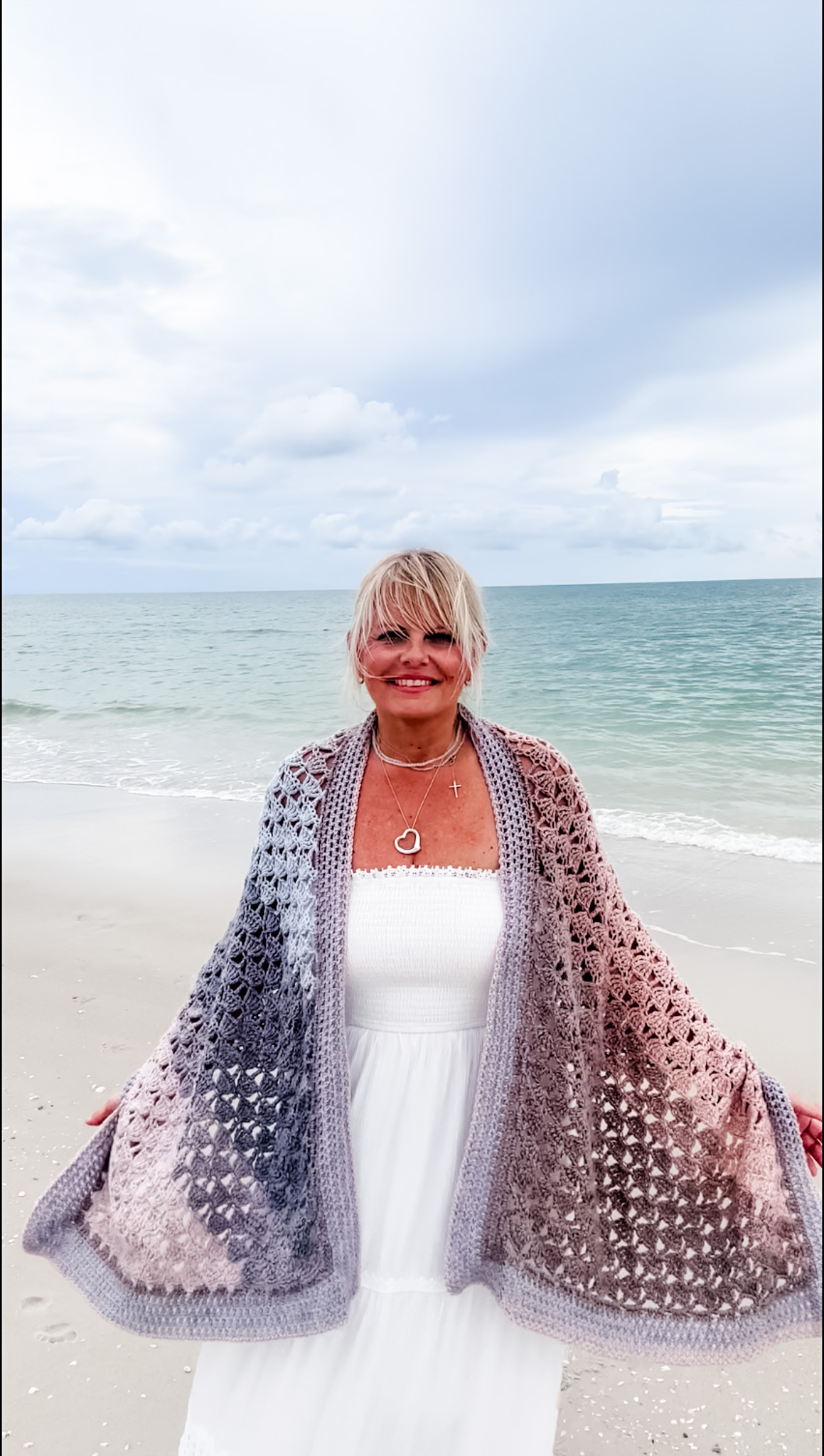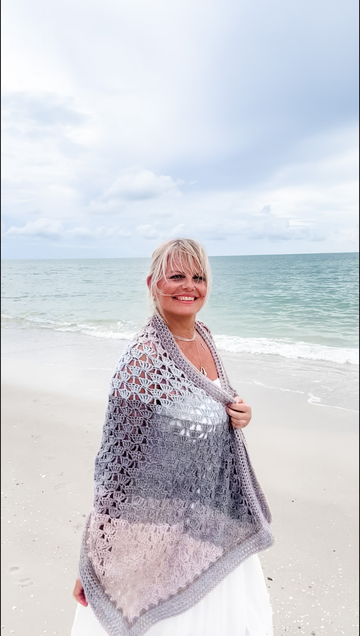 A modern twist on timeless texture The Driftwood Horizon Crochet Shawl Wrap captures the soft rhythm of ocean tides with flowing treble stitches and a soothing gradient that echoes a coastal sunset. Worked seamlessly from point to point, this pattern combines meditative repetition with elegant shaping. Whether you choose a self-striping yarn for effortless color transitions or a solid shade to highlight the stitch pattern, this wrap drapes beautifully for all seasons.