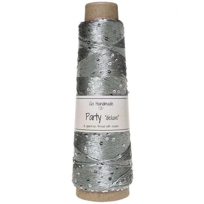 Party Deluxe; 100% polyester sequin yarn; 273yds (230m) per 1.75 oz (50g) cone; color siliver 18174, 2 cones.
