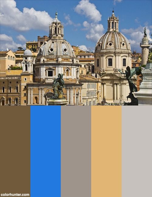 You can also take a photo of the location you are representing in your temperature blanket as inspiration for your palette, too. For example, here are some palette ideas for different locations in Rome, Italy: